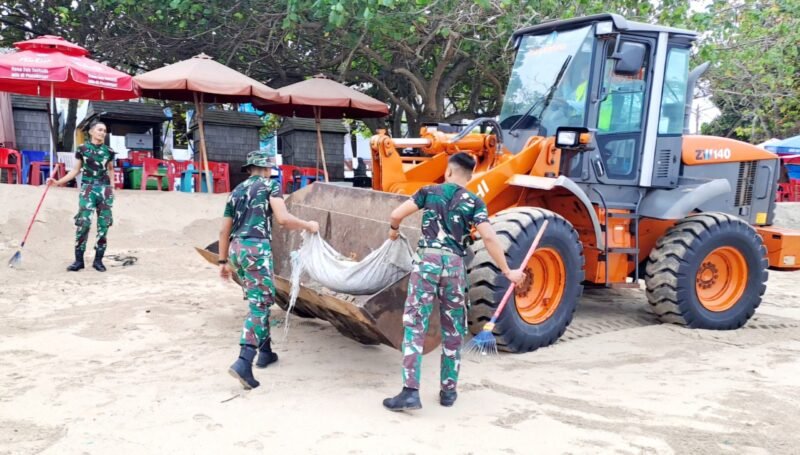 BADUNG, Nasionalklik.com – Pembersihkan sampah dipesisir laut pantai Kuta dalam rangka Karya Bakti Terpadu tepatnya pagi pada pukul 07.00 Wita, bertempat di Pantai Kuta, puluhan prajurit TNI dan Dinas Lingkungan Hidup dan Kebersihan (DLHK) Badung, melanjutkan pembersihan dalam penanganan sampah dipesisir laut pantai Kuta Badung, Bali. Jumát, (31/01/2025)