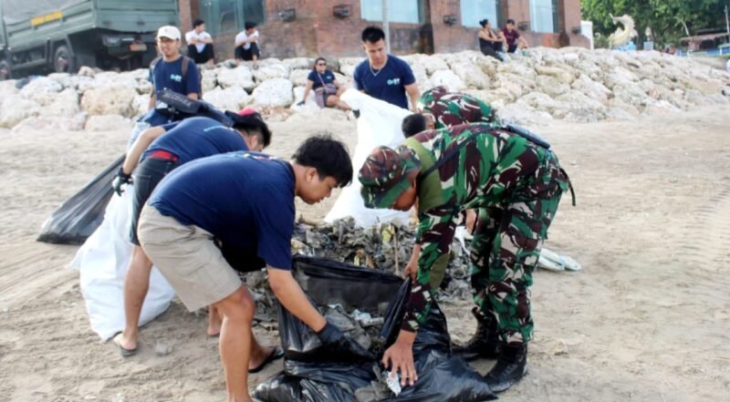 Adapun Peserta Tim gabungan TNI Dan DLHK Badung serta Desa Adat setempat dan masyarakat, ini berlangsung di setiap harinya untuk atasi sampah pantai Kuta dan pantai Kedonganan