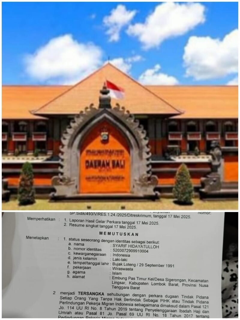 Nasionalklik.com – Ditreskrimum Polda Bali pada tanggal 17 Mei 2025 menetapkan kasus Tindak Pidana perlindungan pekerja migran Indonesia dan penyelenggaraan Ibadah Haji dan Umrah yang terjadi di Terminal keberangkatan Internasional Bandara I Gusti Ngurah Rai.