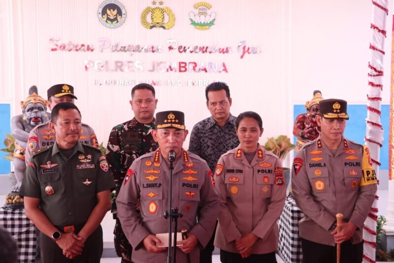 Negara, Nasionalklik.com – Kapolri (Kepala Kepolisian Republik Indonesia) Jenderal Polisi Drs. Listyo Sigit Prabowo, M.Si., melakukan kunjungan kerja (kunker) ke Kabupaten Jembrana. Selasa (17/06/2025). Dalam kunker tersebut, Kapolri meresmikan dan me-launching operasional Gedung Satuan Pelayanan Pemenuhan Gizi (SPPG) Polres Jembrana yang akan mendukung program prioritas nasional Makan Bergizi Gratis (MBG).Kapolri dan rombongan tiba di Stadion Pecangakan sekitar pukul 11.00 WITA menggunakan helikopter tipe Bell 412. Selanjutnya, rombongan menuju Gedung SPPG Polres Jembrana di Jalan Ngurah Rai, Kel. Dauhwaru, Kab. Jembrana, Prov. Bali, dan disambut dengan pengalungan bunga serta iringan gambelan Jegog.Dalam sambutannya usai meresmikan SPPG, Kapolri menyampaikan bahwa dapur ini menjadi bagian penting dari program ketahanan pangan Polri sekaligus dukungan nyata terhadap kebijakan Presiden Prabowo Subianto untuk memenuhi kebutuhan gizi generasi muda.“SPPG Jembrana ini dipersiapkan untuk mendukung program MBG, sekaligus memperkuat ketahanan pangan (Han Pangan) dan keamanan pangan masyarakat,” ujar Kapolri kepada awak media.“Dengan keterlibatan UMKM lokal sebagai penyedia bahan pangan, kita harapkan ini juga berdampak pada pertumbuhan ekonomi di Jembrana,” sambungnya.SPPG Polres Jembrana dibangun di atas lahan seluas 587,5 meter persegi, dengan bangunan seluas 405 meter persegi. Pembangunan dilakukan secara mandiri melalui dana koperasi (PRIMKOPOL: Primer Koperasi Kepolisian) bekerja sama dengan Yayasan Kemala Bhayangkari Polres Jembrana. Kapasitas produksi dapur ini mampu melayani hingga 3.500 porsi makanan bergizi per hari.Sebanyak 47 relawan dari berbagai latar belakang telah direkrut dan dilatih secara intensif untuk mengelola dapur ini. Nantinya, sebanyak 3.492 siswa dari 11 sekolah di Kabupaten Jembrana akan menjadi penerima manfaat secara langsung.Kapolres Jembrana, AKBP Kadek Citra Dewi Suparwati, S.H., S.I.K., M.I.K., yang ditemui usai acara mengatakan bahwa pembangunan SPPG ini merupakan bentuk komitmen dan kepedulian Polres Jembrana terhadap peningkatan kualitas sumber daya manusia, khususnya generasi muda.“Ini bukan sekadar dapur umum, tapi bagian dari upaya Polres Jembrana dalam mewujudkan SDM (Sumber Daya Manusia) unggul menuju Indonesia Emas 2045. Kami ingin anak-anak kita tumbuh sehat, cerdas, dan berdaya saing,” ujar AKBP Kadek Citra Dewi.“Kami juga berterima kasih kepada seluruh pihak, termasuk Pemkab Jembrana, TNI, dan semua elemen masyarakat yang sudah mendukung penuh terwujudnya dapur SPPG ini,” tambahnya.Selain peresmian, kegiatan ini juga dirangkai dengan bakti kesehatan, penyerahan bantuan kursi roda, layanan pemeriksaan kesehatan dasar, hingga edukasi gizi kepada warga.Kapolri beserta rombongan mengakhiri kunjungannya di Jembrana sekitar pukul 12.03 WITA dan bertolak kembali ke Base Ops Lanud I Gusti Ngurah Rai Denpasar menggunakan helikopter. (Byu)