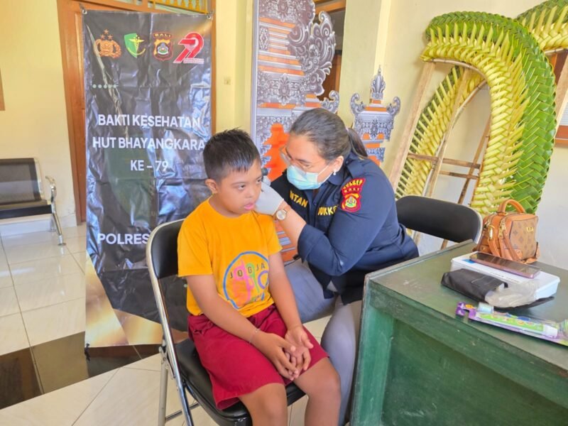 Polda Bali, Polres Bangli, Nasionalklik.com – Klinik Pratama Polres Bangli gelar kegiatan bakti kesehatan dalam rangka memperingati Hari Ulang Tahun (HUT) Bhayangkara ke-79. Kegiatan ini berlangsung pada Rabu, 18 Juni 2025, pukul 08.30-10.00 Wita, bertempat di SLB Negeri Bangli.Kegiatan bakti kesehatan ini meliputi Registrasi dan pemeriksaan tanda vital, Pemeriksaan tinggi dan berat badan, Pemeriksaan THT dan gigi, Konsultasi dokter umum dan gigi, Pemeriksaan gula darah gratis, Pengobatan gratis, Penyuluhan kesehatan, Pembagian sikat gigi, Penyerahan bingkisan kepada Wakil Kepala Sekolah.Seijin Kapolres Bangli, Kasi Dokkes Polres Bangli Iptu dr. Ni Putu Melda DharmahayuMenyampaikan bahwa Sasaran kegiatan ini adalah siswa disabilitas dan guru serta pegawai SLB Negeri Bangli, Ratusan guru dan siswa antusias menjalani pemeriksaan kesehatan diantaranya pemeriksaan gula darah gratis, Pemberian terapi kepada yang mengalami keluhan medis dan Penyuluhan tentang pentingnya menjaga kesehatan.”jelas Iptu dr. Melda Kegiatan ini dihadiri oleh Wakapolres Bangli, Kompol Willa Jully Nendissa, S.I.K., personil Polsek Bangli dan Polwan Polres Bangli. Kegiatan ini berlangsung dengan baik dan lancar. (HMS)/(byu)