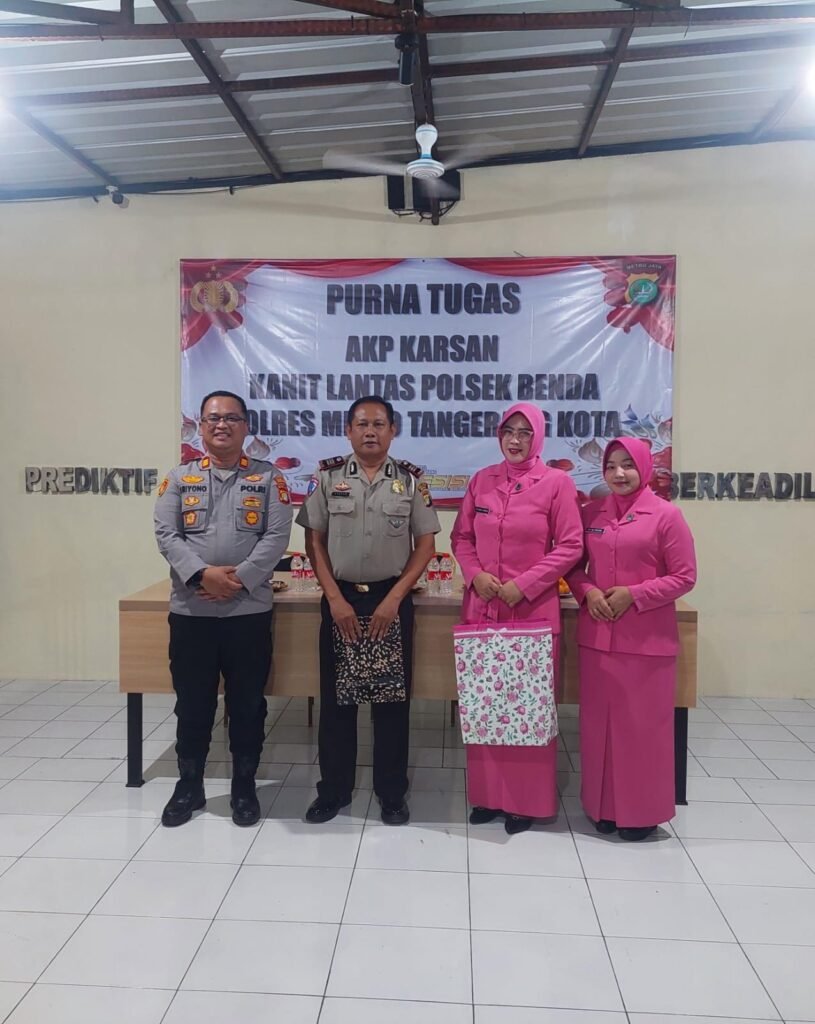 TANGERANG – Polsek Benda Tangerang menggelar Acara purna bakti AKP (Purn) Karsan, Kanit Lantas Polsek benda, pada kamis (26/56/2025) pagi. Kegiatan berlangsung penuh khidmat dan kekeluargaan di Mako Polsek benda