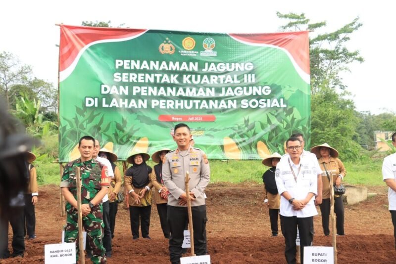 Bogor, Nasionalklik.com – Dalam rangka mendukung ketahanan pangan nasional dan pemberdayaan masyarakat, Polres Bogor melaksanakan kegiatan Penanaman Jagung Serentak Kuartal III yang berlangsung di lahan Perhutanan Sosial, Rabu (9/7/2025).