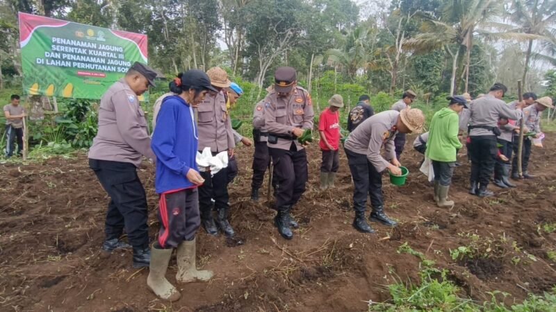 Nasionalklik.com, RENDANG – Dalam rangka program Gugus Tugas Polri mendukung ketahanan pangan kwartal III Polsek Rendang dipimpin Kapolsek Kompol I Made Berata,SH,MH bersama anggota dan kelompok tani Satya Loka Parama Sidhi melaksanakan penanaman jagung serentak kuartal III tahun 2025 di Banjar Dinas Batang, Desa Besakih, Kecamatan Rendang, rabu (9/7/2025)”Program ini merupakan bentuk dukungan Polri terhadap ketahanan pangan nasional. Kami berharap ini bisa menjadi contoh pemanfaatan lahan produktif,” .”Kami juga mengharapkan lahan warga yang produktif ini agar tetap terjaga dan tidak menjadi lahan kosong yang terbengkalai apalagi beralih fungsi menjadi lahan perumahan,” . Kegiatan ini menunjukkan komitmen Polsek Rendang Polres Karangasem dalam mendukung program ketahanan pangan sekaligus membina hubungan baik dengan warga masyarakat kelompok tani Satya Loka Parama Sidhi guna mendukung ketahanan pangan nasional. (Byu)