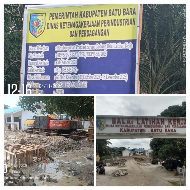 Nasionalklik.com-Sumatera Utara, Batubara- Hasil investigasi Lembaga Ruang Keadilan Rakyat Indonesia (LRKRI) bersama tim media di lokasi proyek pembangunan pondasi sarana Gedung Balai Latihan Kerja (BLK) di Desa Petatal, Kecamatan Datuk Tanah Datar, Kabupaten Batu Bara, Sumatera Utara, Jumat (21/11/2025) mengungkap sederet temuan serius yang patut dipertanyakan.